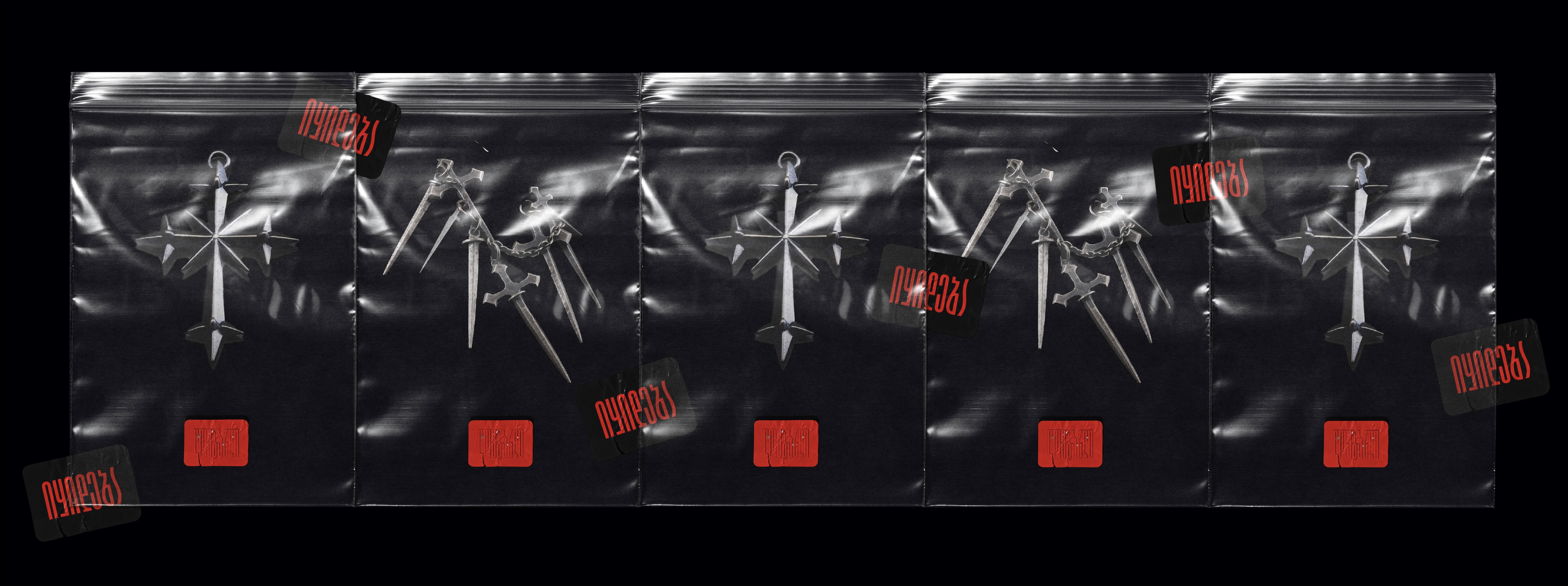 The visual language leans into this irony. Jewellery is presented inside transparent zip bags, almost like evidence, confiscated goods, or something temporarily stored rather than displayed. Barcodes, tags, and stark red backgrounds suggest transaction, urgency, even danger. But inside the packaging: handcrafted pieces with weight, detail, and intention. What looks disposable holds something permanent.